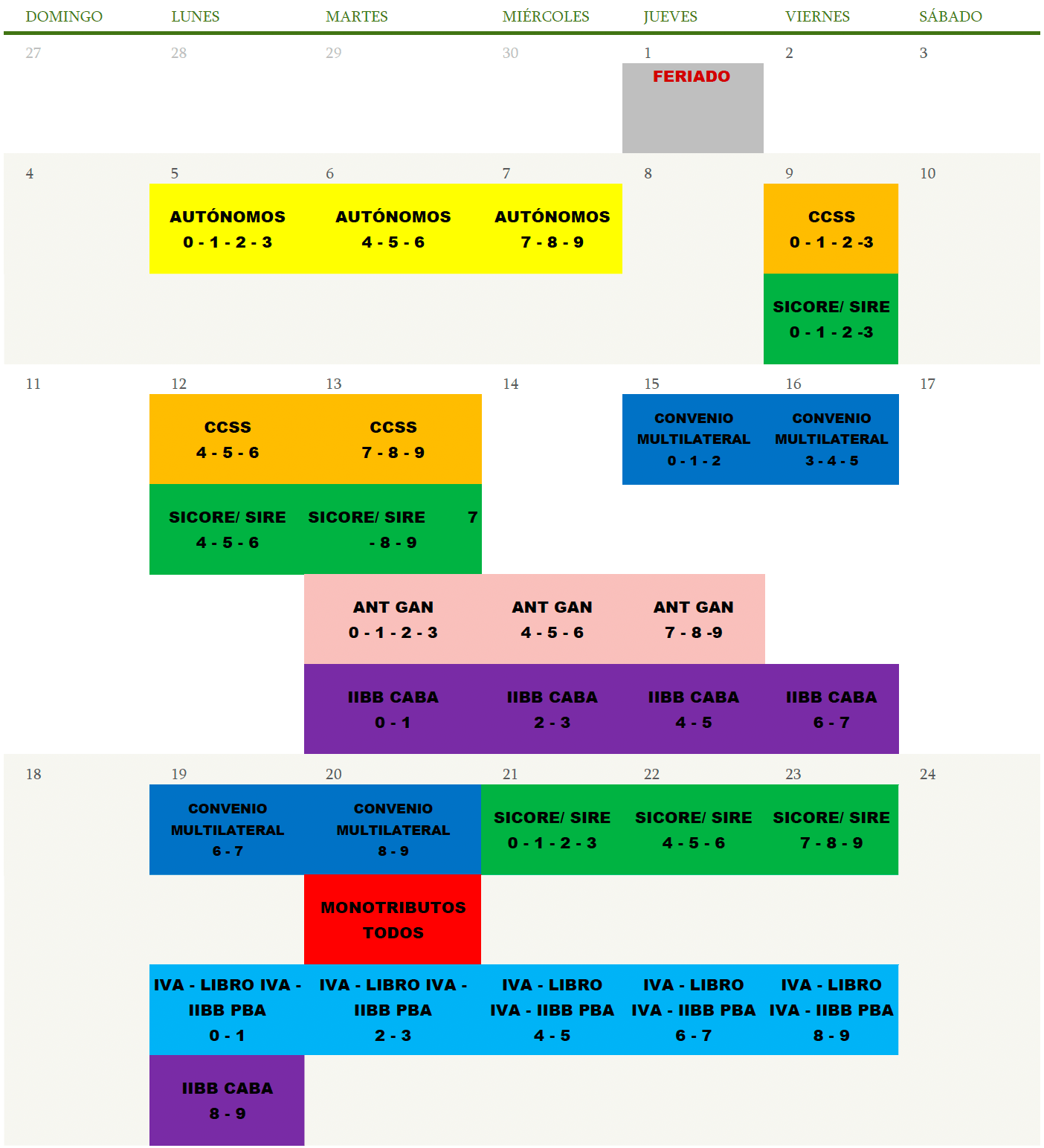 Calendario de impuestos nacionales